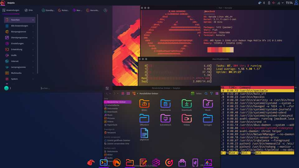 - 🧠 **Garuda Linux**  *(Arch-based)* for daily work — custom kernels, performance tuning, and full control.